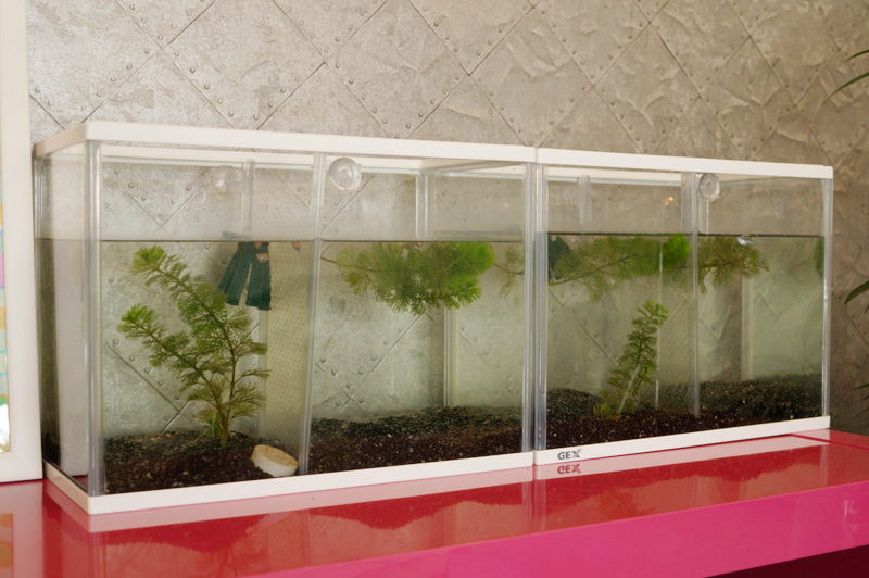 これもオーナーさんの趣味で、けっこうレアなメダカだそうです。美容室とは別でメダカ飼育のブログも運営されています。メダカの飼育はオススメだそうですよ(笑)