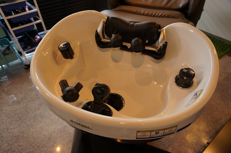 シャンプー台も頭を優しく支える機構が付いていて疲れにくいそうな。