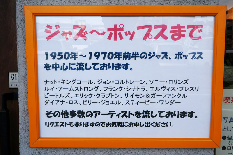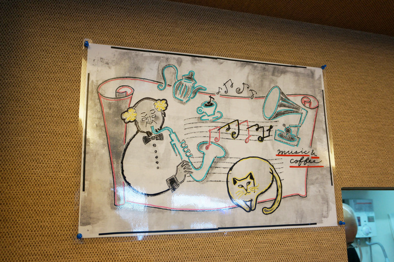昔の純喫茶をイメージしていて、店内では1950年~1970年代前半のジャズ、ポップスを中心とした音楽を流しているそうです。