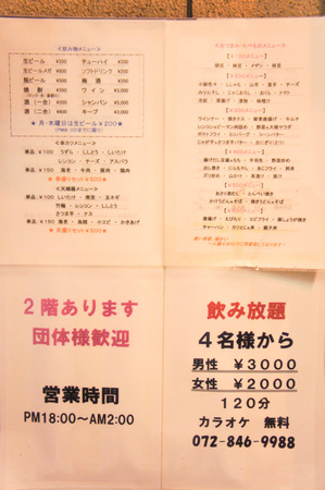 2階は15~20名様くらいまで入り、貸切も可能とのこと。男性3,000円、女性2,000円で2時間飲み放題&カラオケ歌い放題というプランもあるそうです。カラオケ店とは違う魅力がある”お店カラオケ”で2次会や3次会にもぴったりです