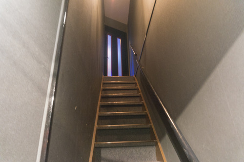 お店は二階にあります。