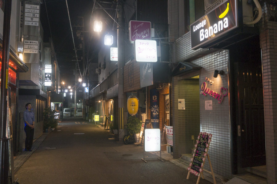 こちらへ行って突き当たりを左折すると解体された旧近鉄百貨店や交番のある所へ。写真左端に立っておられるのは撮影を見守ってくださりました店長の宇城さん。