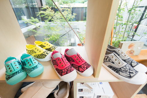 この可愛いスニーカーはアクセサリーも作っている作家さんのブランド『marble』のもの。