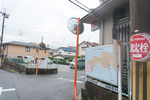 しばらく歩くと右手に「枚方香里郵便局」が見えたら右折して、郵便局と駐車場の間の道を行きます。