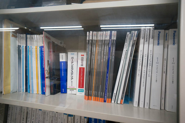 事務所の棚にもサンプルのカタログがたくさん置いてありました。