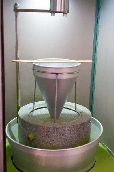 工場長がいる時しか引かない石臼は抹茶の風味を損なわないようにゆーーーっくりひくそうです。1日回してもひける抹茶の量はごくわずかだそう。
