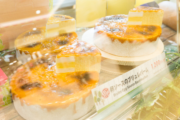 バームクーヘンの真ん中、穴の部分にはカスタードプリンと生クリームが詰まっています(上の写真では左側)。しっとりのバームクーヘンに、表面のブリュレがこれまた香ばしく、絶妙な組み合わせで贅沢おいしい〜♪