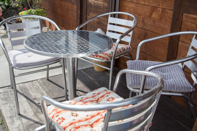 入り口のそばにはテーブルとイスが置かれていて休憩することができます。