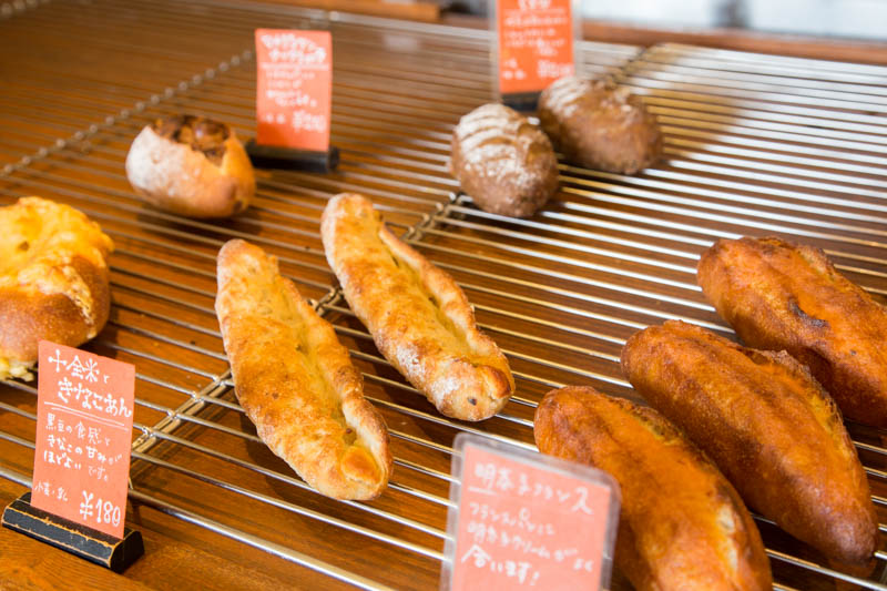 お店の外からも棚に並んだパンが見えています。