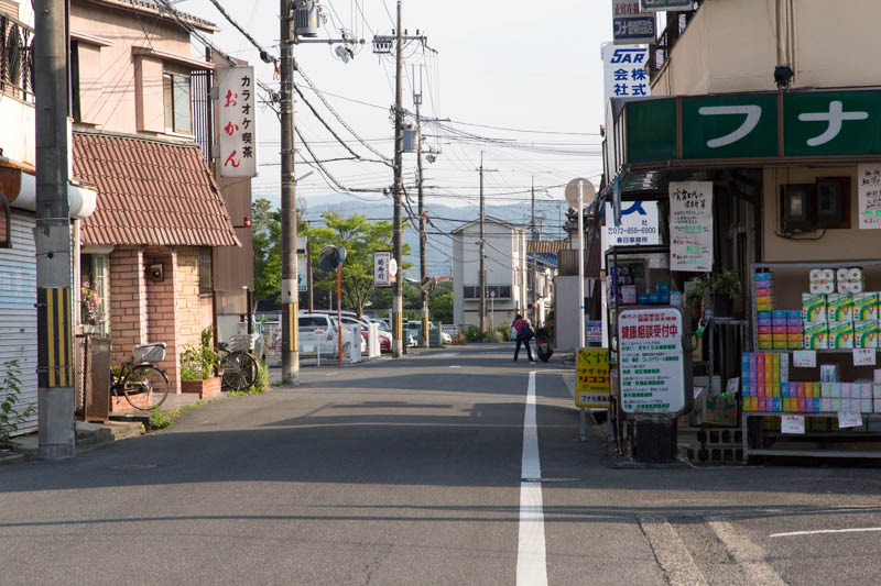 お店の前の道を写真奥のほうへ進むと、丁字路に突き当たるので、右に曲がってまっすぐ行くと津田駅前に出ます。