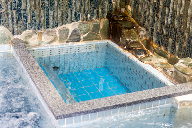奥は左から気泡風呂・電気風呂・超音波風呂・水風呂のラインナップ。