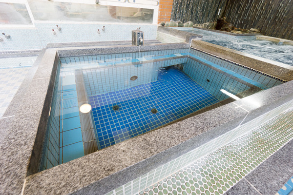 電気風呂は腰掛けるようになっていて、ちょうど腰のあたりをピリピリと刺激してくれます。腰を近づけるとさらに刺激がアップ!