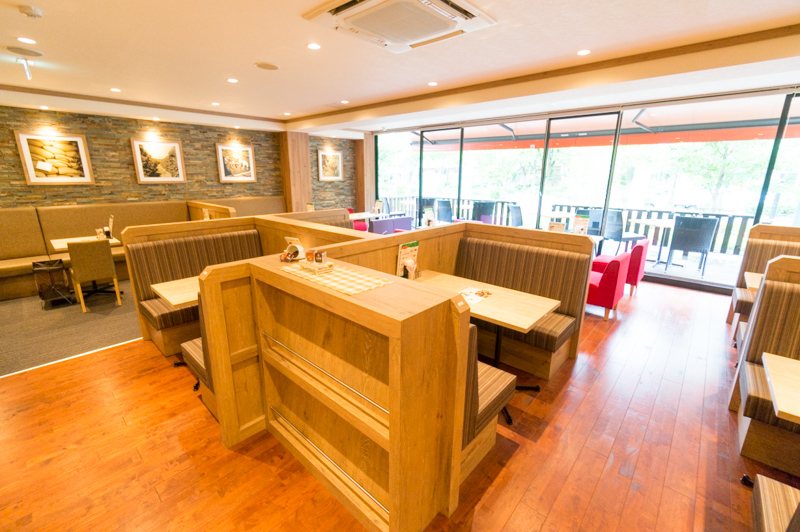 手前は低い仕切りのあるテーブル席が並んでいます。
