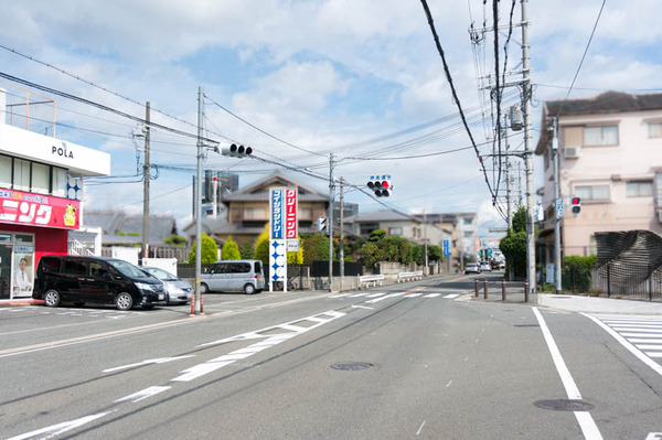 反対へ行くとアルプラザ枚方店やJR線の高架があります。そのままずっとまっすぐ行くと、国道一号線に突き当たります。