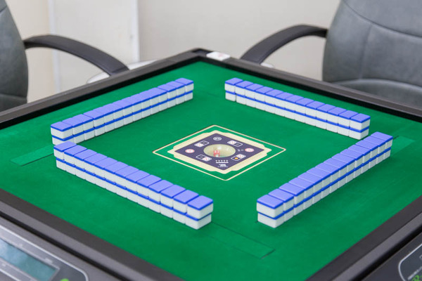 卓の上には麻雀牌(マージャンパイ)がキレイに揃えて並べられています。