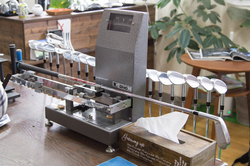 続いてコチラの器械はクラブ自体の重量を測定して、振り心地を数値化するもの。