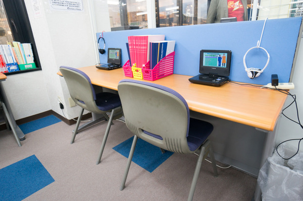 こちらのテーブルには自主学習で使われているDVD教材があり、
