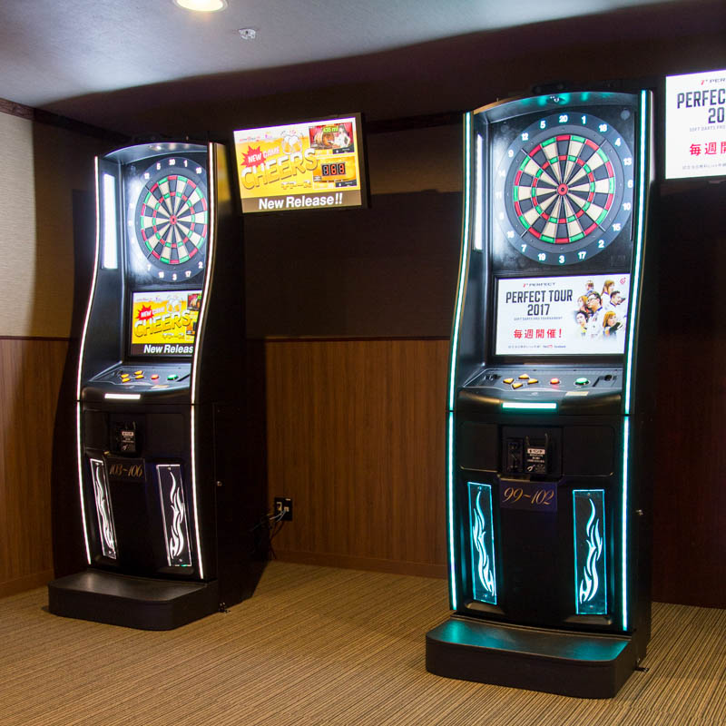 ダーツはオンラインで対戦をすることも可能。最新機種のDARTSLIVE2が2台、VSフェニックスS4が2台あります。