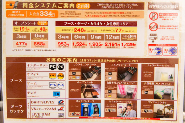 お店は3階と2階に分かれており、3階はマンガ・インターネットカフェがメインになっているフロア。