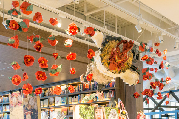 ※1月の展示のようす。吊り下げられている椿の花がプレゼントされます。