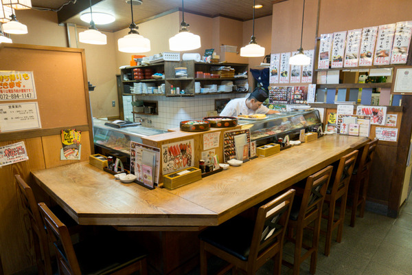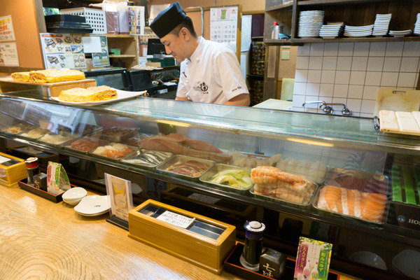 新鮮なネタが並び、職人さんが握っているようすを見られるのもカウンターならではの醍醐味。