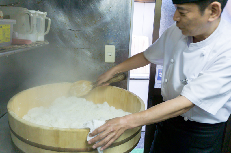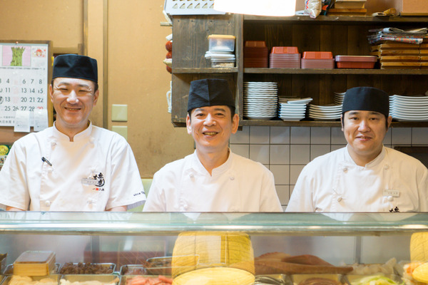 釣りが趣味という職人の中野さんが焼いているのは、弁慶自慢の玉子焼き。