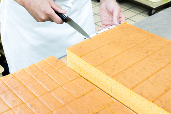 大きな「ひらほまれ(カステラ)」を販売用にサイズカットされていました。