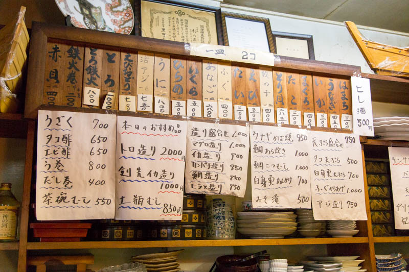 カウンターの奥にはお寿司のネタやお料理のメニューが貼られています。