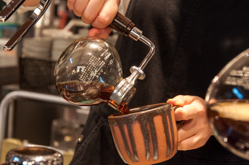 珈琲はサイフォンで一杯一杯抽出しており、間近で見ることができます。