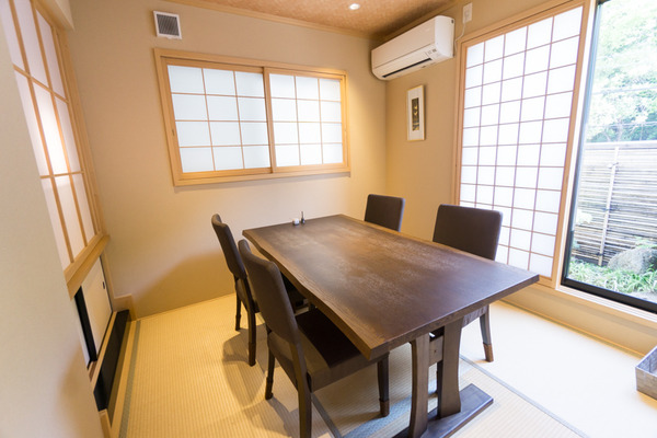 成田山不動尊の裏の林が見えるお部屋。こちらは4人で完全な個室になります。