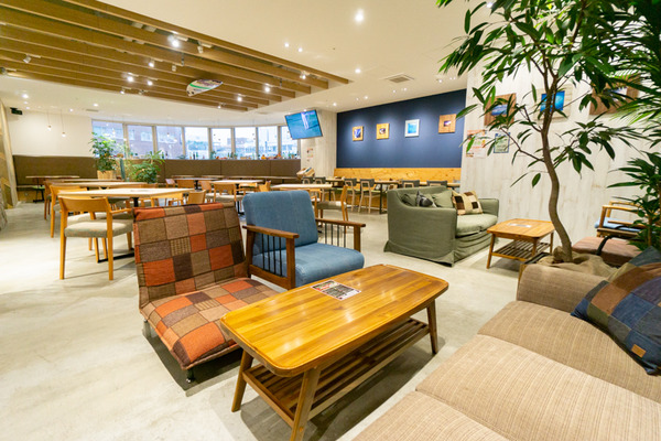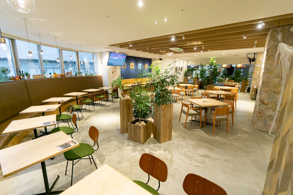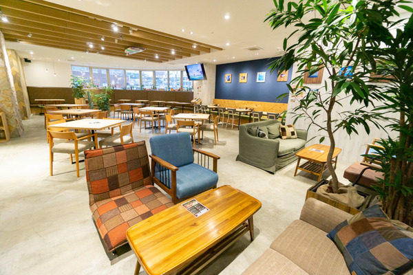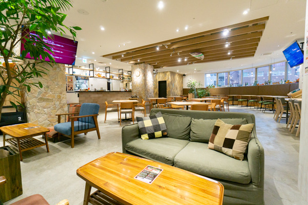 広い店内は、木がふんだんに使われていてあたたかい雰囲気です。団体での貸切も可能。