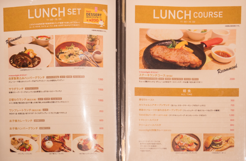 天井にはサーフボードがあったり、店名「moonlight」の由来となったアメリカの西海岸を彷彿させます。