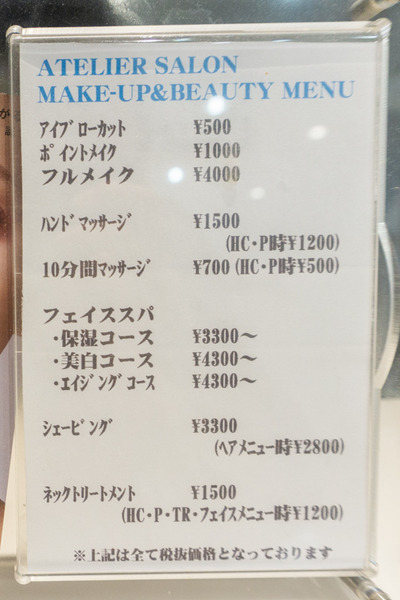 メイクのメニューもあります。こちらもshu uemuraの化粧品