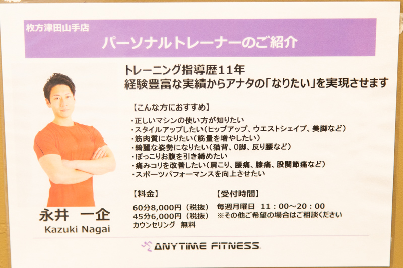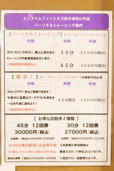 上記はスタッフトレーナーの濱田さんの料金表です。