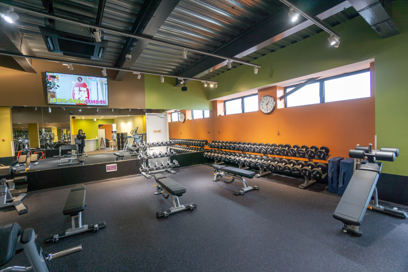 1階のフロアは、フリーウエイト(ダンベルやバーベルを使ったトレーニングのこと)が中心です。