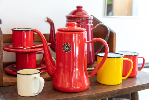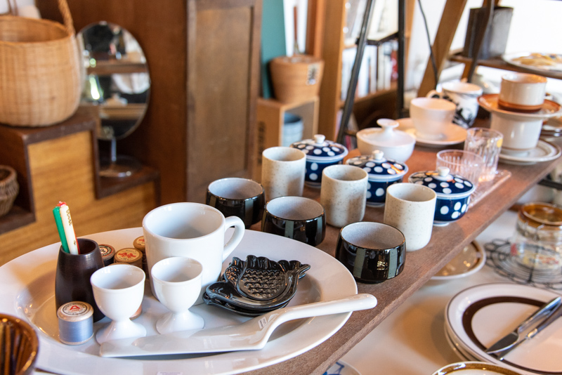 1960〜80年代のジャパニーズモダンな古道具を販売する店内には、商品を眺めながらコーヒーを楽しめる小さな喫茶スペースが併設されています。