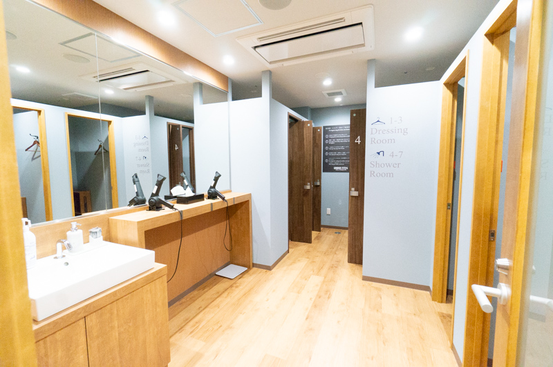ロッカールーム内にはシャワールーム4つ、更衣室3つ。