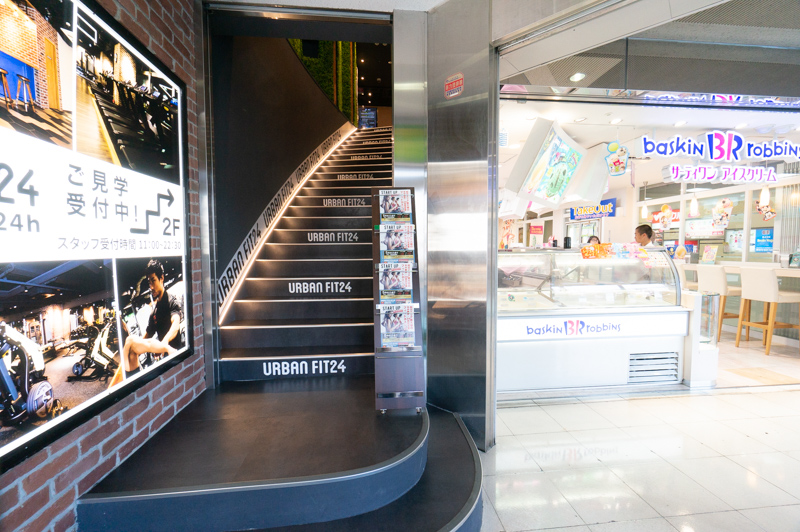近畿ビル内のサーティーワン横の階段を上がると、アーバンフィット24枚方店です。