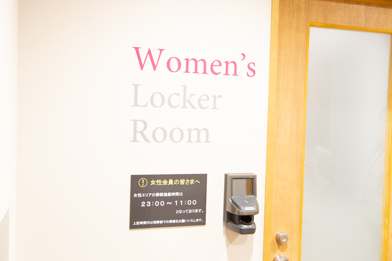 スタッフさんが不在になる23時〜翌朝11時までは、女性のロッカールームは静脈認証で入室します。