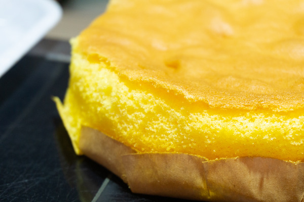 黄色いスポンジの秘密は、黄身が濃い卵も使っているからなのだそう。