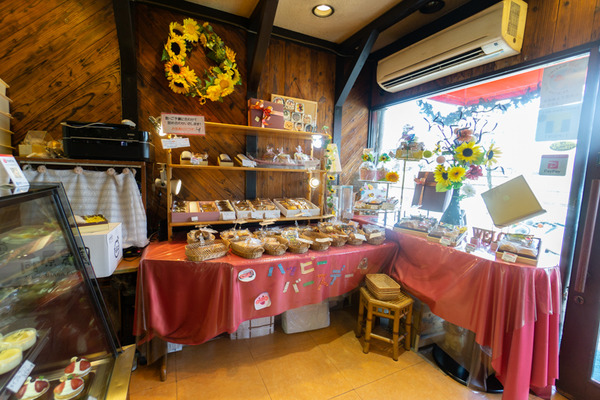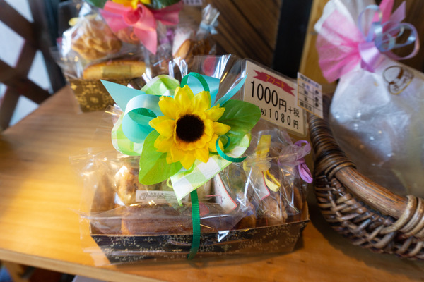 お花がたくさん飾られた店内には、手作りのお菓子がたくさん並んでいます。