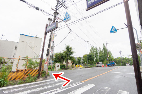 京阪牧野駅を出て、牧野駅前商店会をまっすぐ進みます。