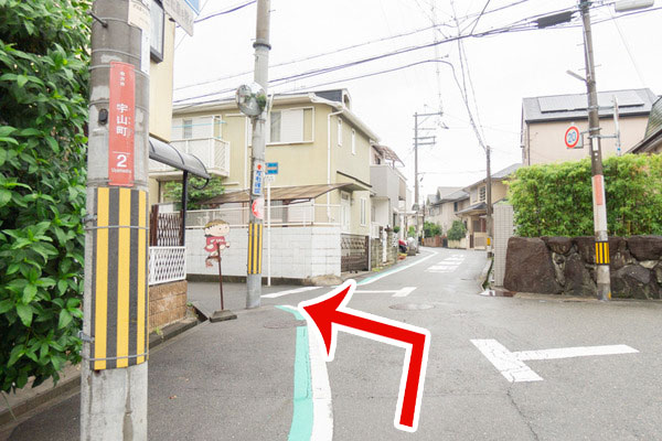 宇山町2の電柱を通り過ぎたら、分かれ道を左へ曲がります![]()
