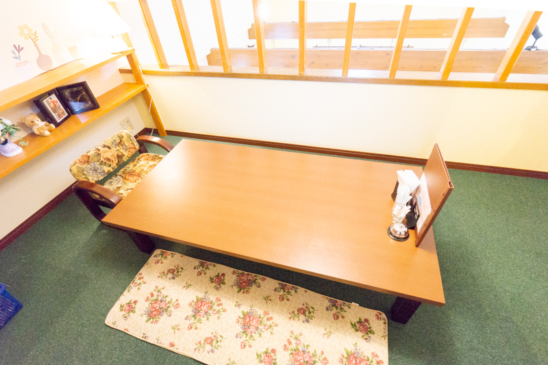 2階は靴を脱いで、ゆ〜っくりとくつろげるお部屋になっています。