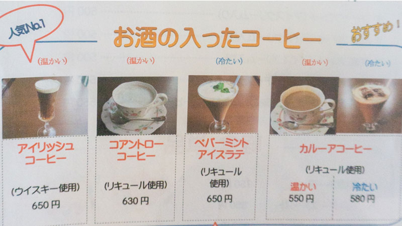 イチオシはお酒の入ったコーヒーとのこと。