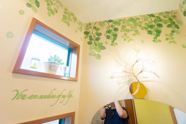 向かって左奥にはお手洗いと2階への入口があります。