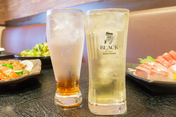 左 パッションフルーツ 450円(税抜) 右 ブラックニッカハイボール380円(税抜)