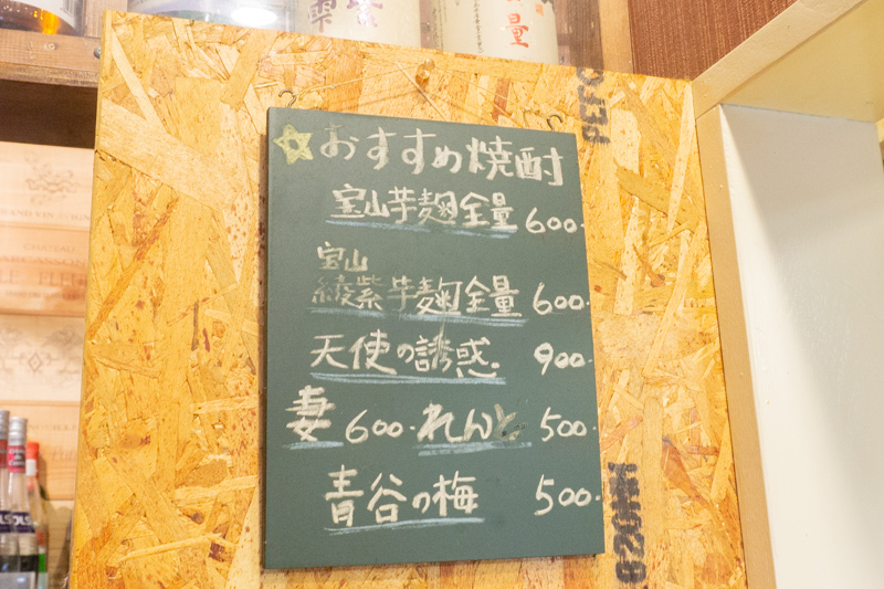 おすすめの焼酎もありました。天使の誘惑が気になります