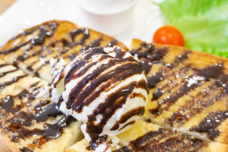 もっちり厚切りのトーストに、ひんやりアイスがとろ〜り![]()
