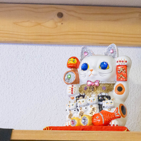 店内もいたる所が猫グッズで飾られていますが、ひときわ派手な猫ちゃんを発見…!!